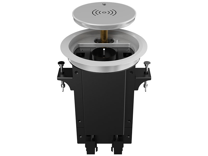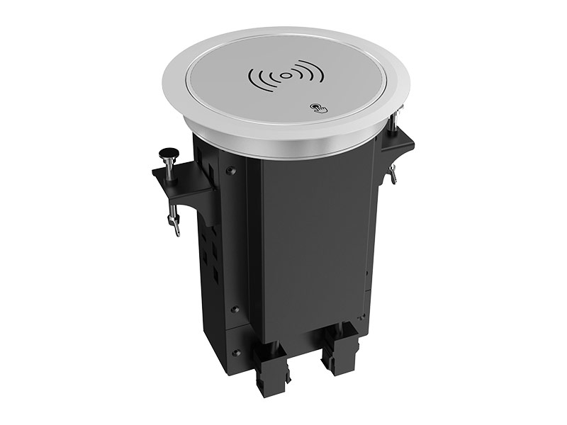 Архитектурный лючок для подключения кабелей с моторизованной крышкой и встроенным модулем розетки 220В