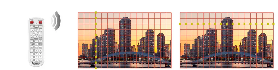Функция сетки позволяет корректировать незначительные искажения, настраивая горизонтальные или вертикальные линии на фиксированной сетке 11 x 17. Корректировку можно легко выполнить с помощью пульта дистанционного управления.